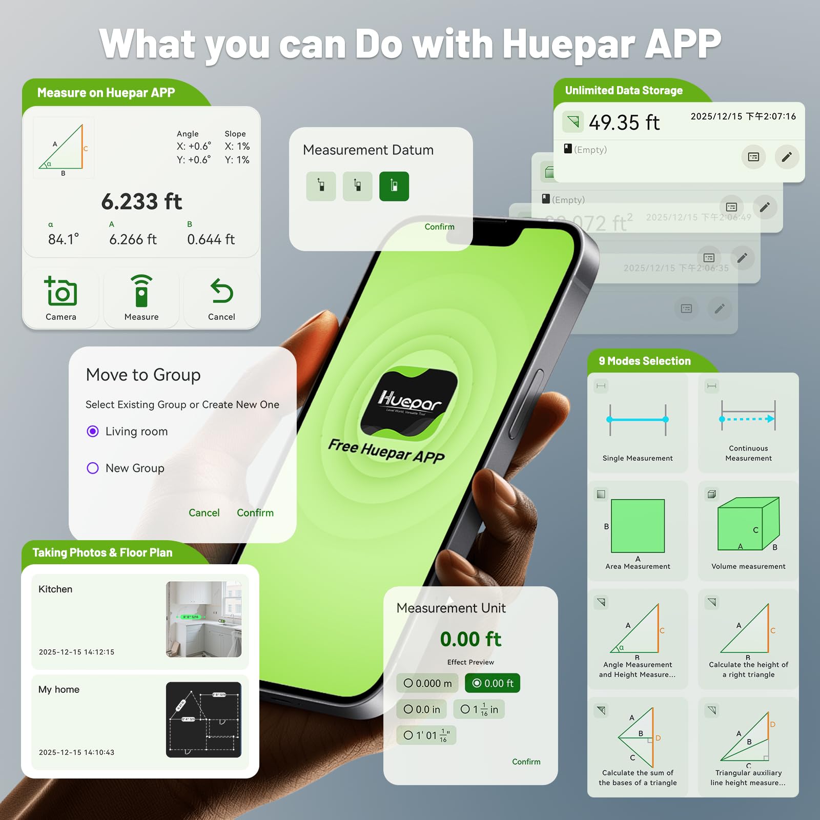 - ăSmart APP Control · Easy & EfficientăTired of complicated laser measures that take time to learn? With full APP integration, this laser measuring tool makes measuring smarter and easier. Sync data instantly to your phone, create groups, add annotated photos, and draw sketches. Effortlessly switch units, modes, and reference points in real time. Simple to operate, perfect for both beginners and professionals
